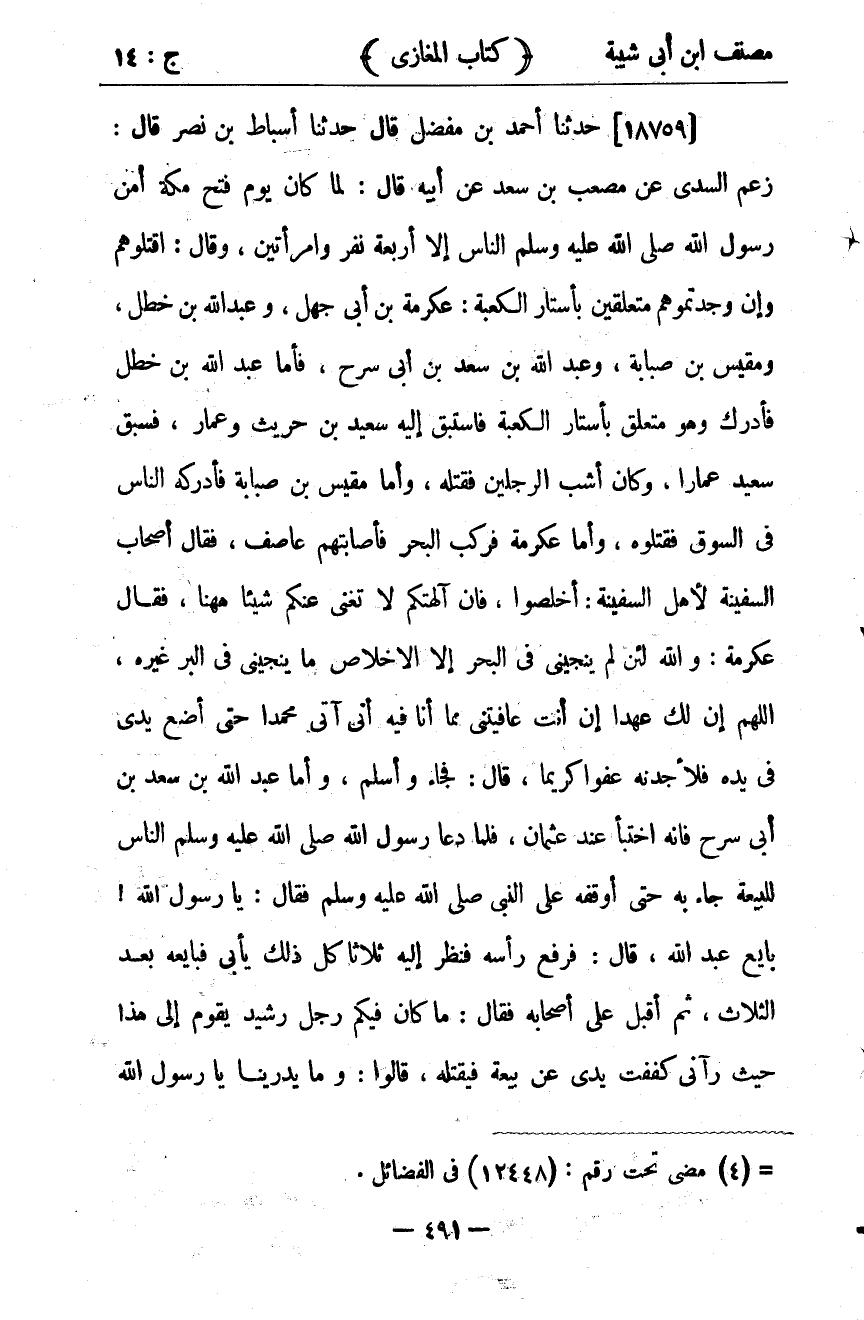 كتاب مصنف ابن أبي شيبة ط السلفية بالهند (اسم الجزء: 14)