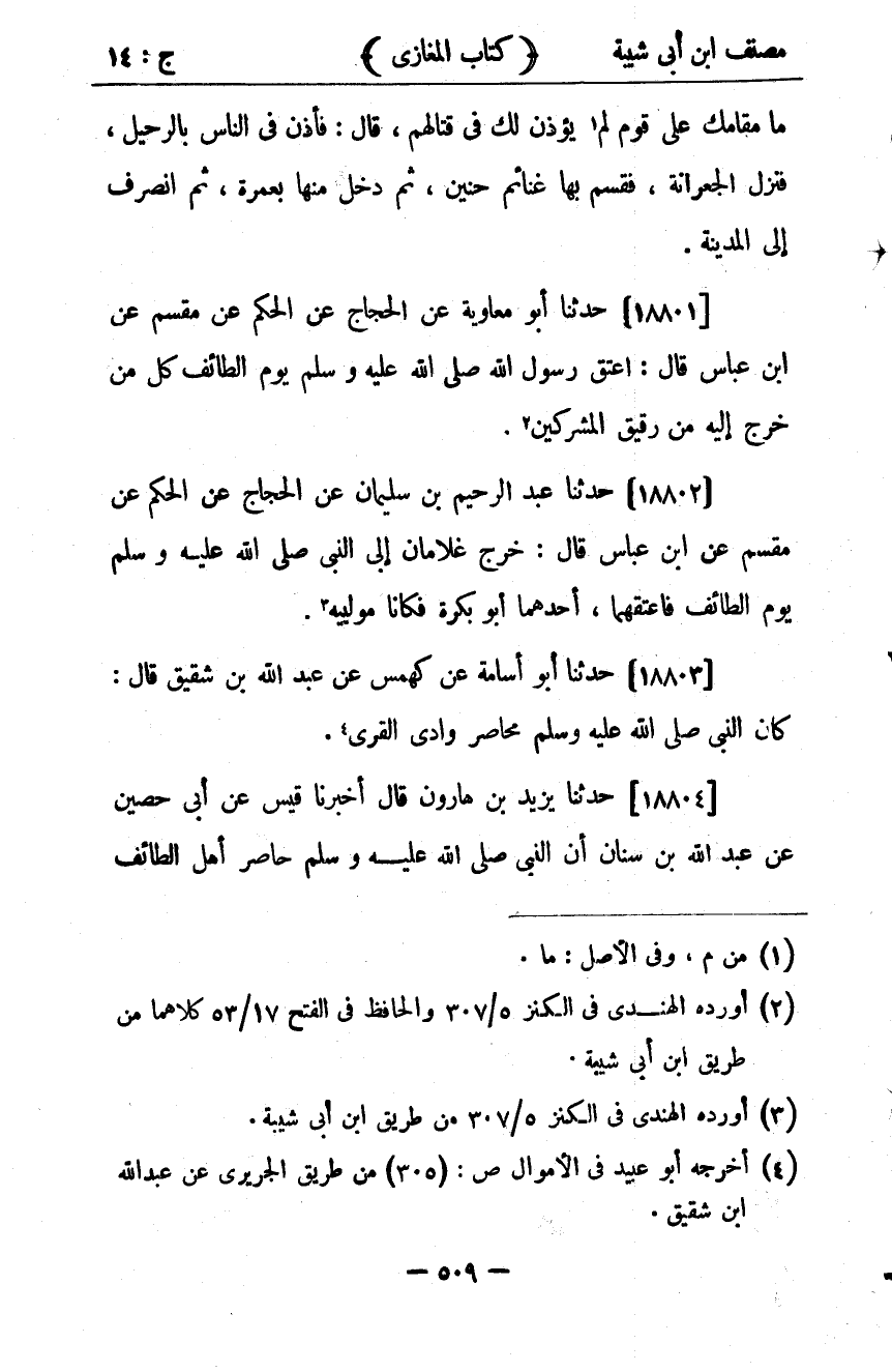 كتاب مصنف ابن أبي شيبة ط السلفية بالهند (اسم الجزء: 14)