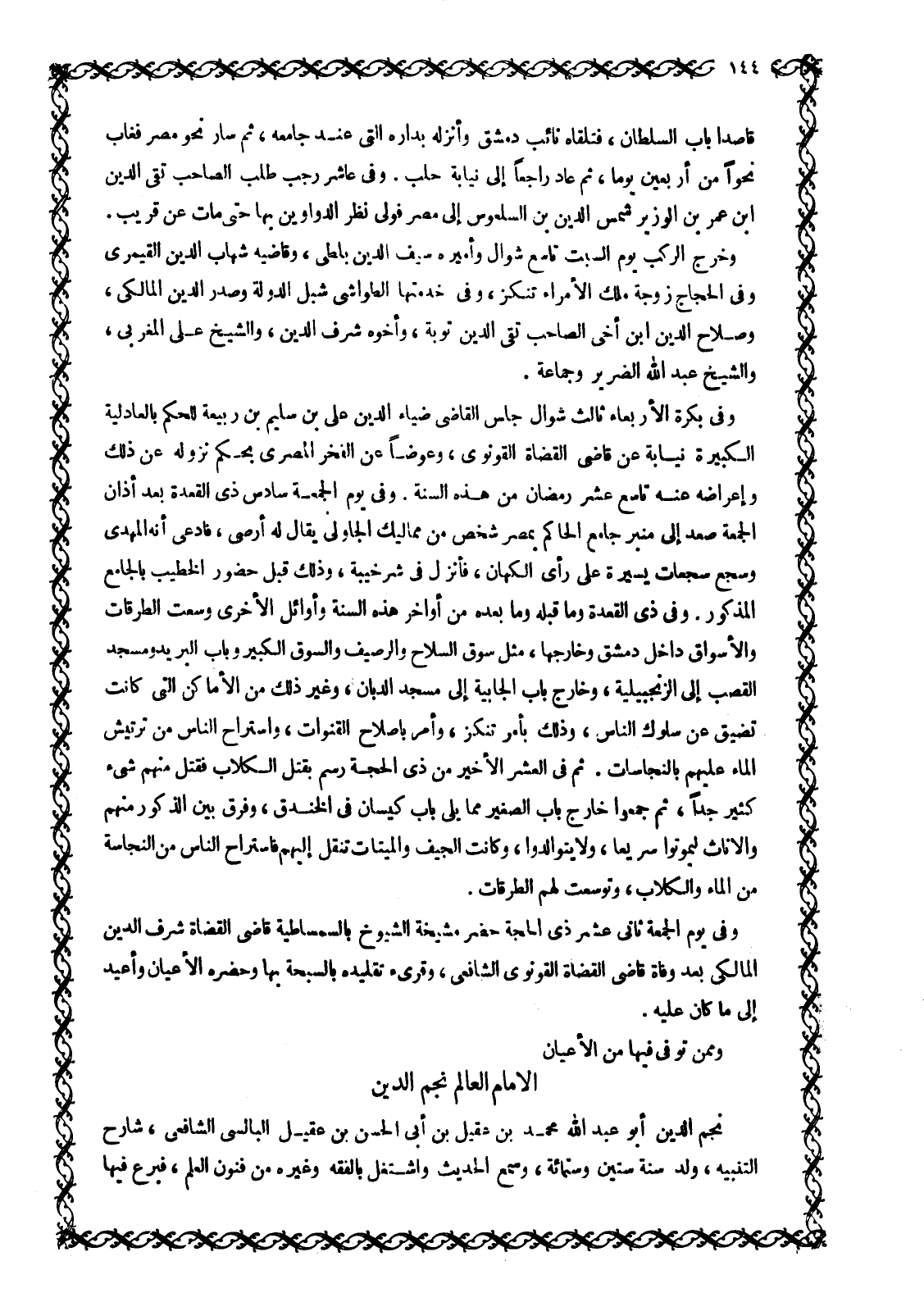 نَجْمُ الدِّينِ أَبُو عَبْدِ اللَّهِ مُحَمَّدُ بْنُ عَقِيلِ بْنِ أَبِي الْحَسَنِ بْنِ عَقِيلٍ الْبَالِسِيُّ الشَّافِعِيُّ، شَارِحُ التَّنْبِيهِ، وُلِدَ سَنَةَ سِتِّينَ وَسِتِّمِائَةٍ، وَسَمِعَ الْحَدِيثَ وَاشْتَغَلَ بِالْفِقْهِ وَغَيْرِهِ مِنْ فُنُونِ الْعِلْمِ، فَبَرَعَ فِيهَا
