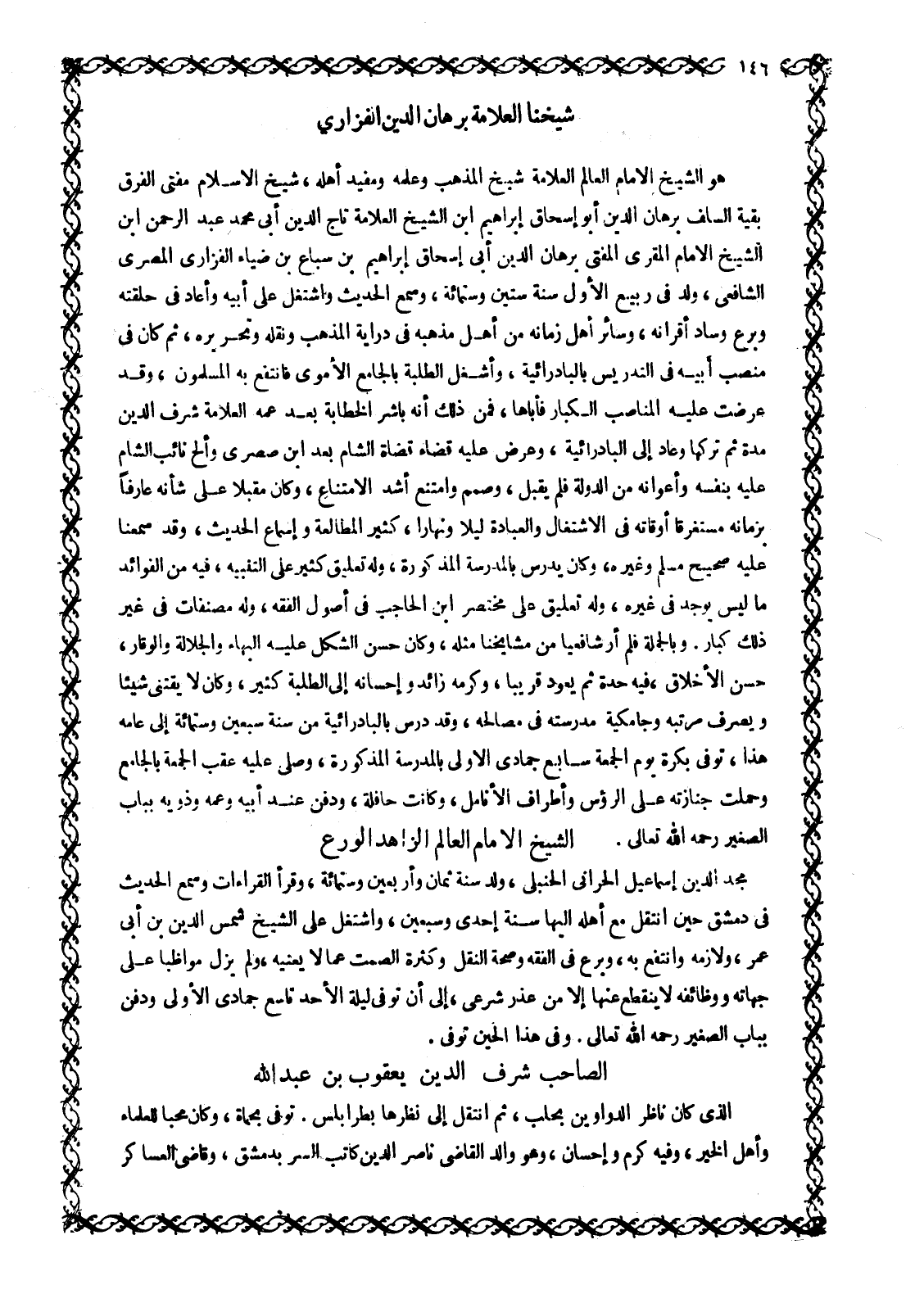شيخنا العالم الْعَلَّامَةُ بُرْهَانُ الدِّينِ الْفَزَارِيُّ