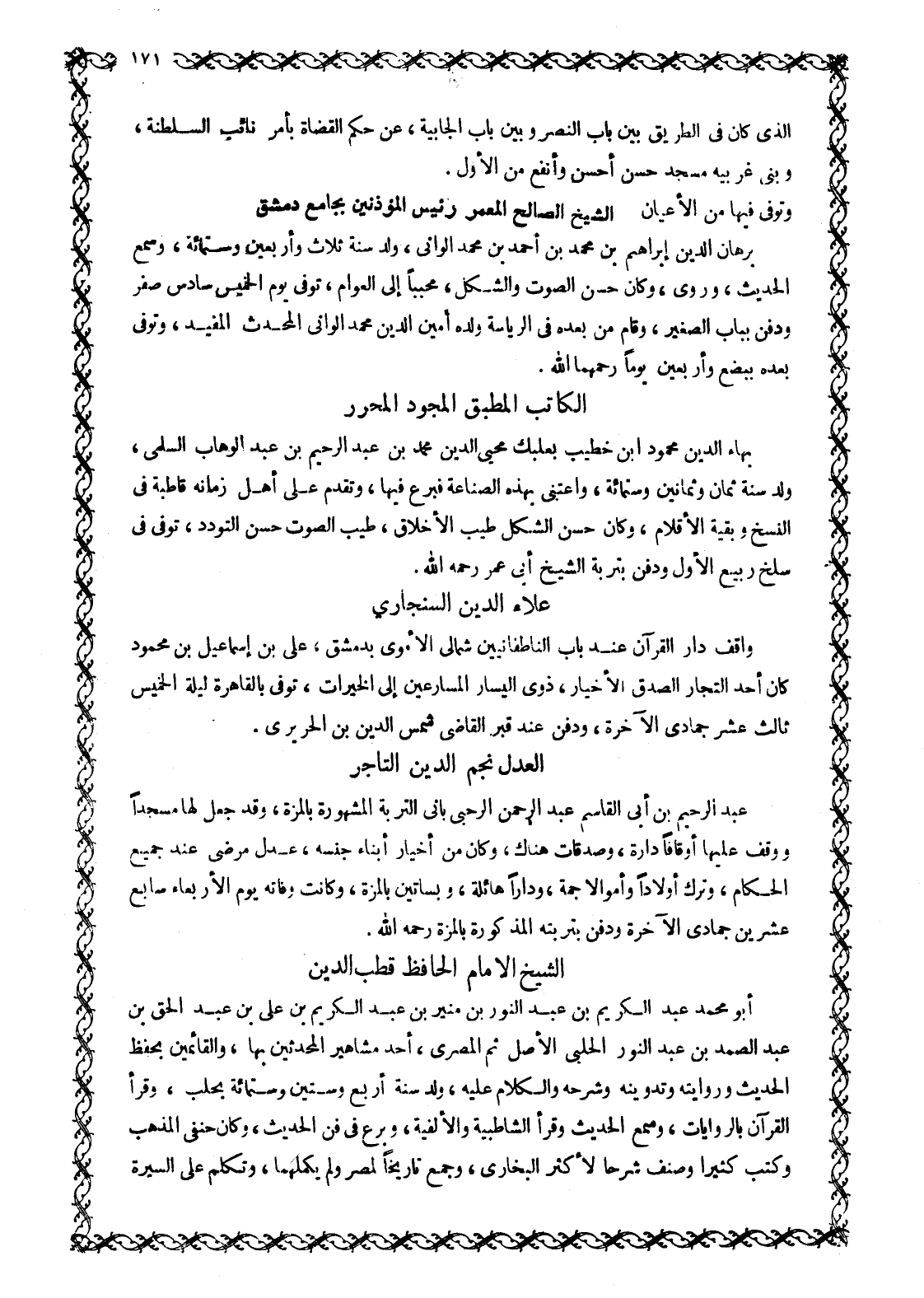 الشَّيْخُ الصَّالِحُ الْمُعَمَّرُ رَئِيسُ الْمُؤَذِّنِينَ بِجَامِعِ دِمَشْقَ