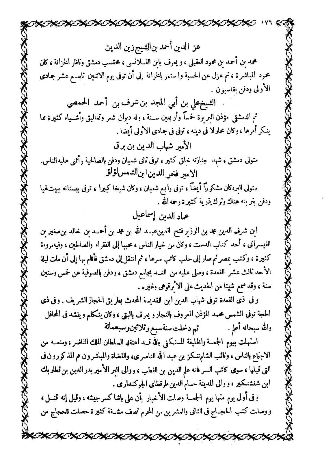 مُتَوَلِّي دِمَشْقَ، شهد جنازته خلق كثير، توفى ثَانِي شَعْبَانَ وَدُفِنَ بِالصَّالِحِيَّةِ وَأَثْنَى عَلَيْهِ النَّاسُ.