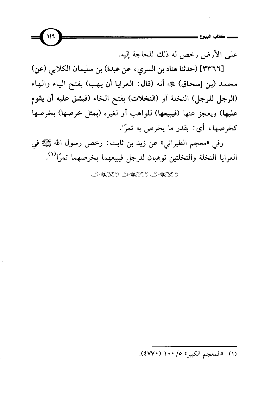 [3366] (حدثنا هناد بن السري، عن عبدة) بن سليمان الكلابي (عن) محمد (بن إسحاق) -رضي الله عنه- أنه (قال: العرايا أن يهب) بفتح الياء والهاء (الرجل للرجل) النخلة أو (النخلات) بفتح الخاء (فيشق عليه أن يقوم عليها) ويعجز عنها (فيبيعها) للواهب أو لغيره (بمثل خرصها) بخرصها كخرصها، أي: بقدر ما يخرص به تمرًا.