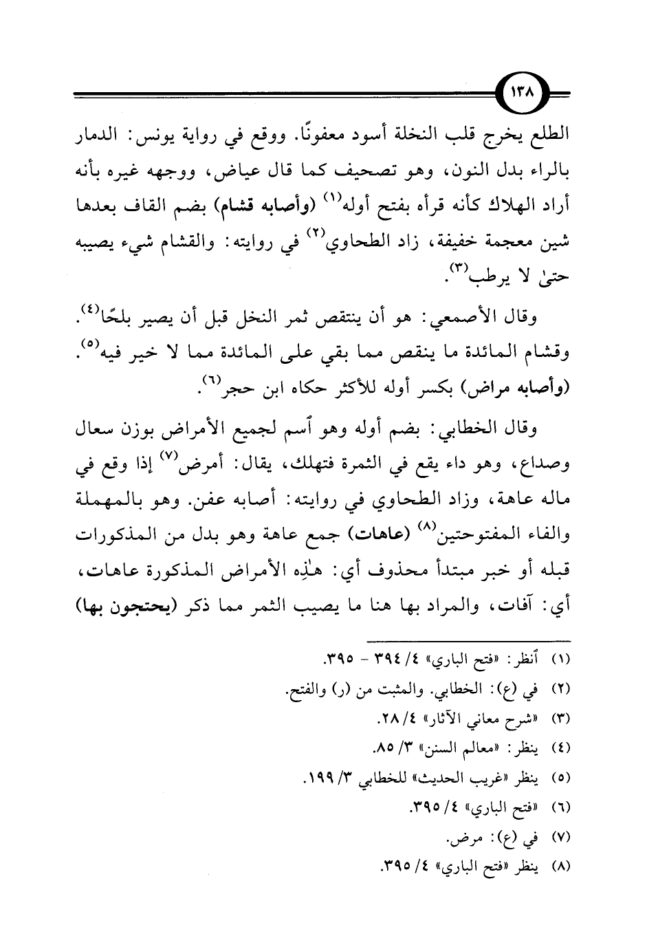 (¬5) ينظر "غريب الحديث" للخطابي 3/ 199.