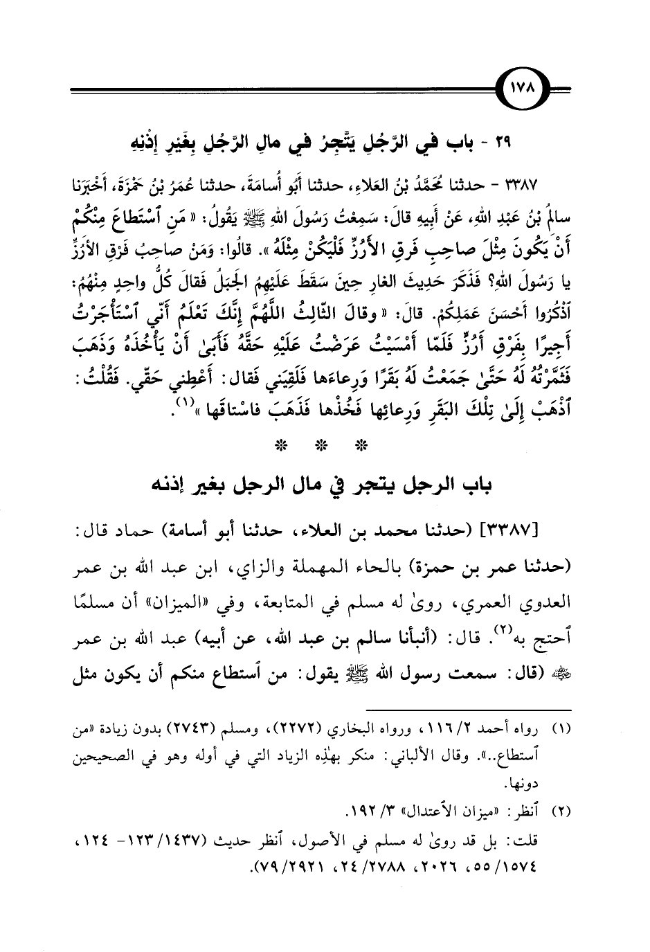 [3387] (حدثنا محمد بن العلاء، حدثنا أبو أسامة) حماد قال: (حدثنا عمر بن حمزة) بالحاء المهملة والزاي، ابن عبد الله بن عمر العدوي العمري، روى له مسلم في المتابعة، وفي "الميزان" أن مسلمًا احتج به (¬2). قال: (أنبأنا سالم بن عبد الله، عن أبيه) عبد الله بن عمر -رضي الله عنه- (قال: سمعت رسول الله - صلى الله عليه وسلم - يقول: من استطاع منكم أن يكون مثل