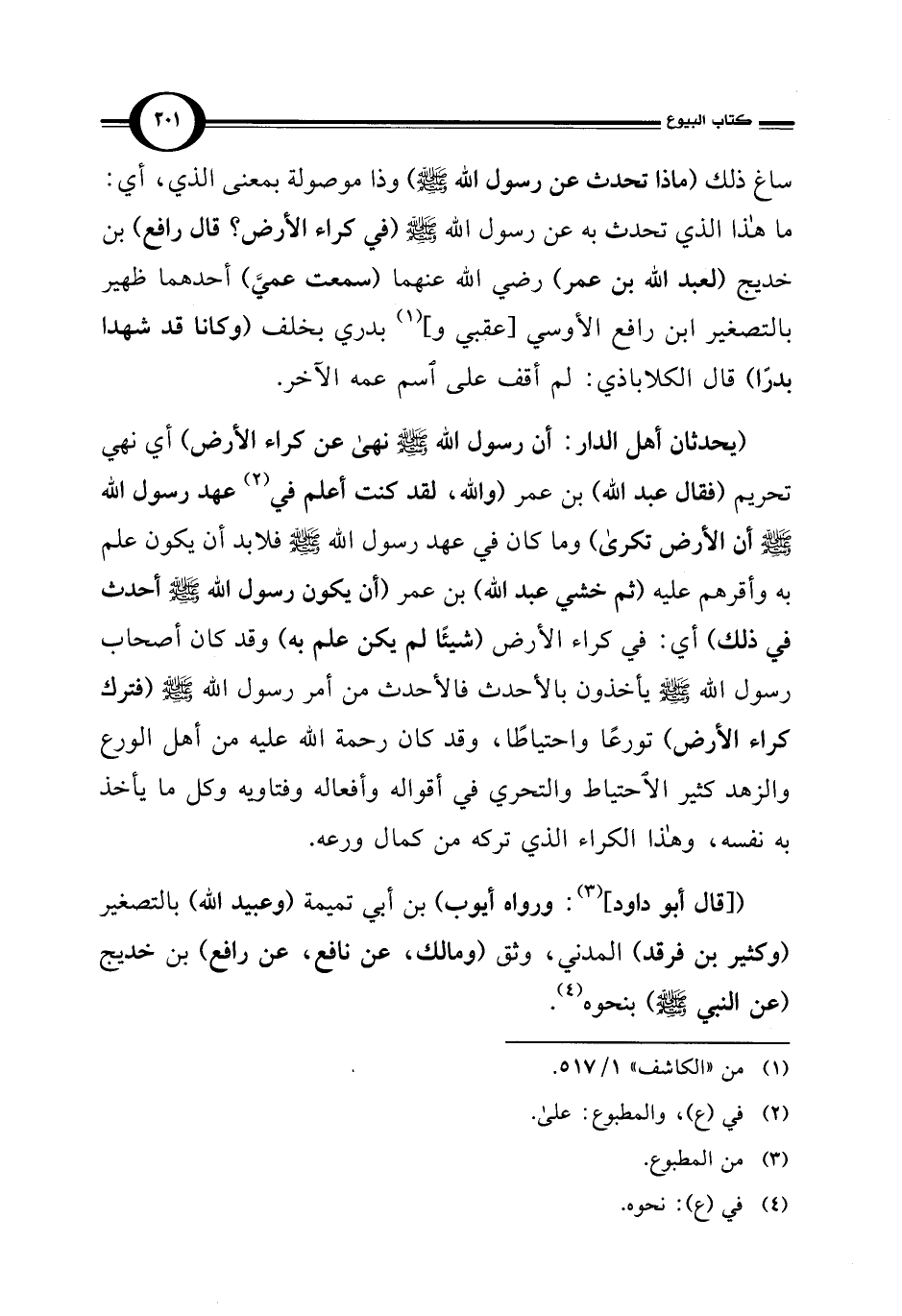 ([قال أبو داود] (¬3): ورواه أيوب) بن أبي تميمة (وعبيد الله) بالتصغير (وكثير بن فرقد) المدني، وثق (ومالك، عن نافع، عن رافع) بن خديج (عن النبي - صلى الله عليه وسلم -) بنحوه (¬4).