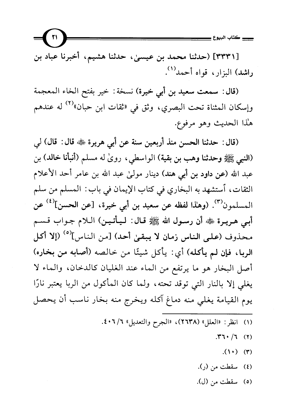 [3331] (حدثنا محمد بن عيسى، حدثنا هشيم، أخبرنا عباد بن راشد) البزار، قواه أحمد (¬1).