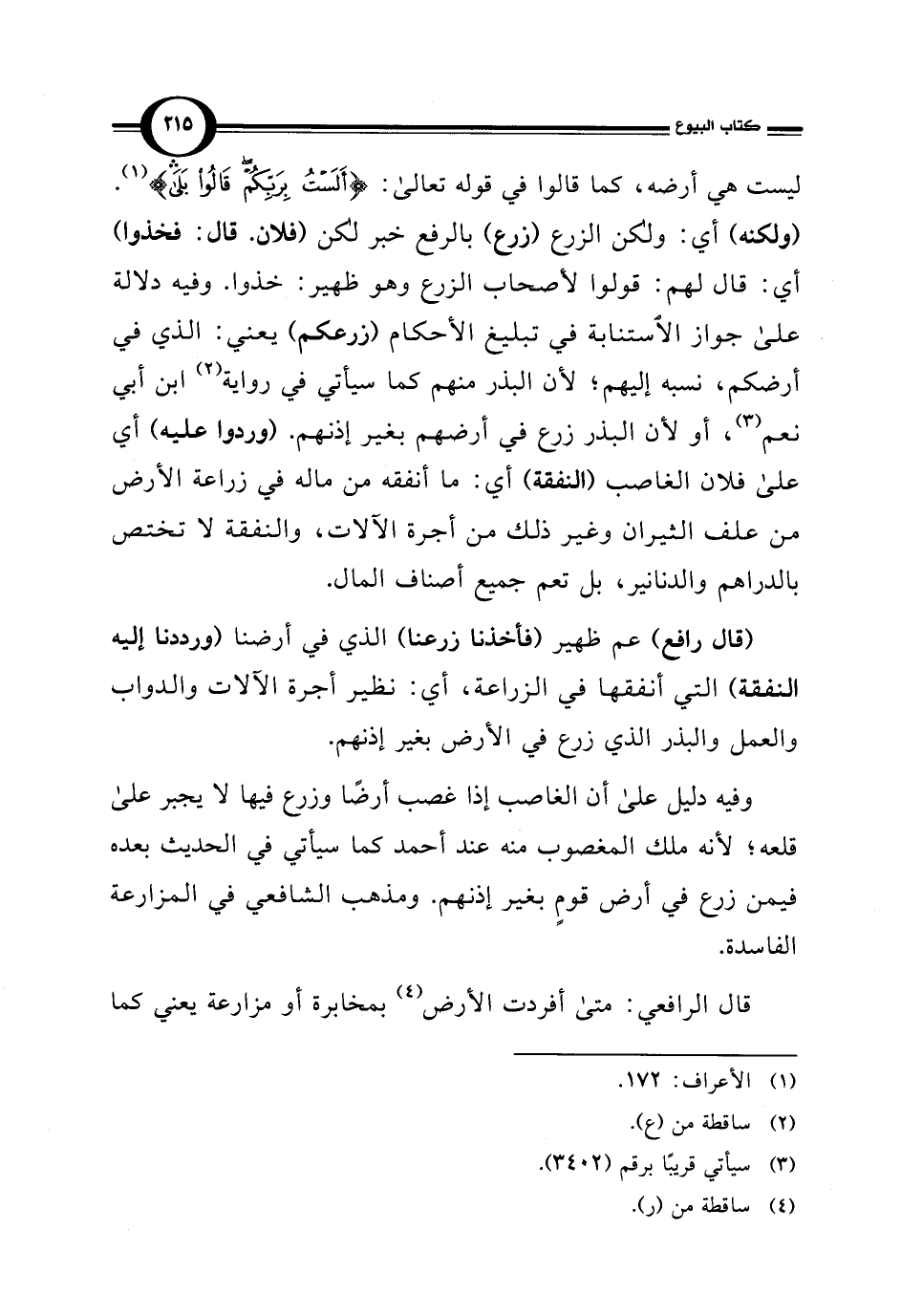 ليست هي أرضه، كما قالوا في قوله تعالى: {أَلَسْتُ بِرَبِّكُمْ قَالُوا بَلَى} (¬1). (ولكنه) أي: ولكن الزرع (زرع) بالرفع خبر لكن (فلان. قال: فخذوا) أي: قال لهم: قولوا لأصحاب الزرع وهو ظهير: خذوا. وفيه دلالة على جواز الاستنابة في تبليغ الأحكام (زرعكم) يعني: الذي في أرضكم، نسبه إليهم؛ لأن البذر منهم كما سيأتي في رواية (¬2) ابن أبي نعم (¬3)، أو لأن البذر زرع في أرضهم بغير إذنهم. (وردوا عليه) أي على فلان الغاصب (النفقة) أي: ما أنفقه من ماله في زراعة الأرض من علف الثيران وغير ذلك من أجرة الآلات، والنفقة لا تختص بالدراهم والدنانير، بل تعم جميع أصناف المال.