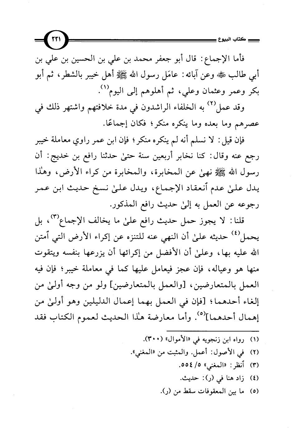 فأما الإجماع: قال أبو جعفر محمد بن علي بن الحسين بن علي بن أبي طالب -رضي الله عنه- وعن آبائه: عامَل رسول الله - صلى الله عليه وسلم - أهل خيبر بالشطر، ثم أبو بكر وعمر وعثمان وعلي، ثم أهلوهم إلى اليوم (¬1).
