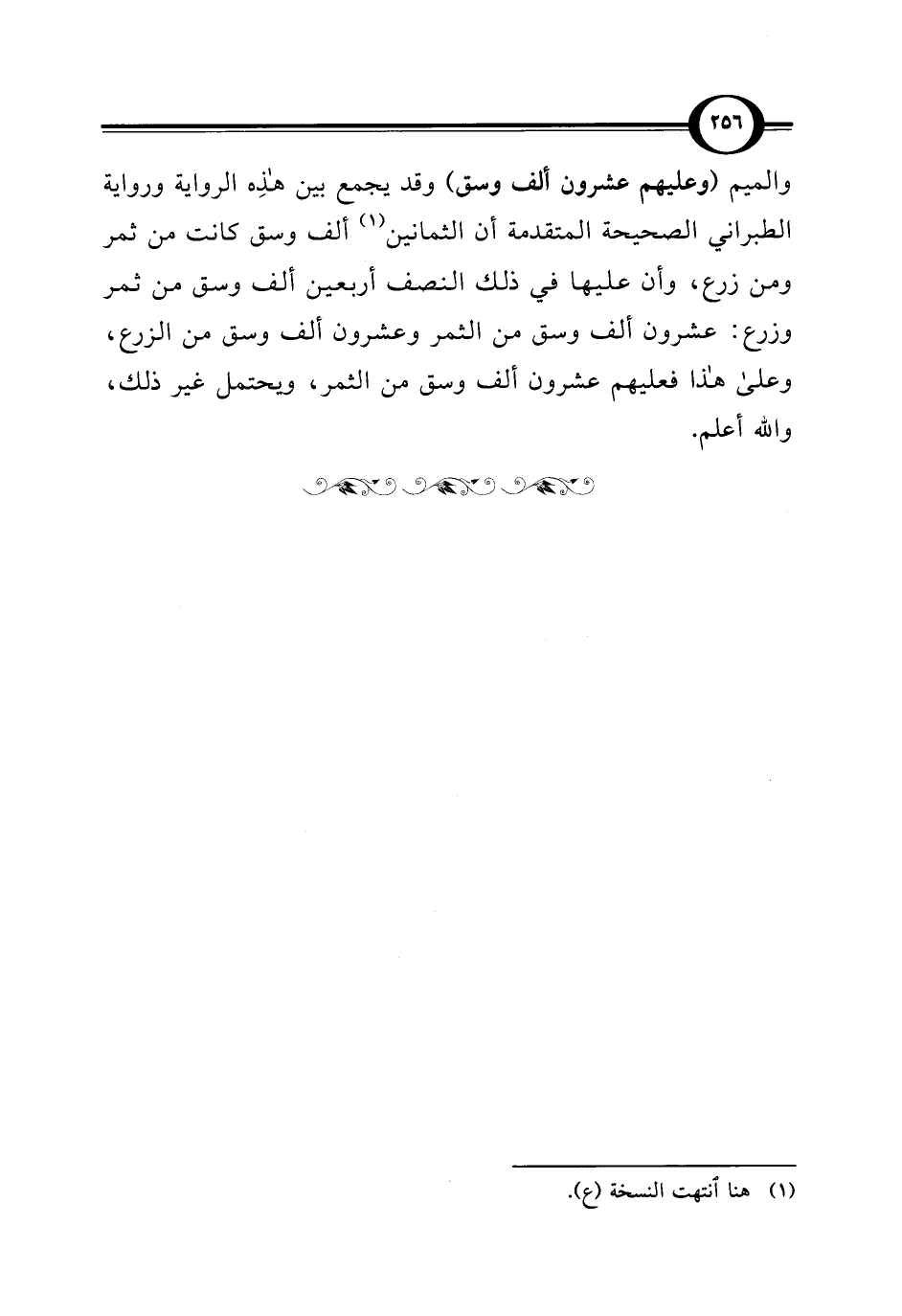 والميم (وعليهم عشرون ألف وسق) وقد يجمع بين هذِه الرواية ورواية الطبراني الصحيحة المتقدمة أن الثمانين (¬1) ألف وسق كانت من ثمر ومن زرع، وأن عليها في ذلك النصف أربعين ألف وسق من ثمر وزرع: عشرون ألف وسق من الثمر وعشرون ألف وسق من الزرع، وعلى هذا فعليهم عشرون ألف وسق من الثمر، ويحتمل غير ذلك، والله أعلم.