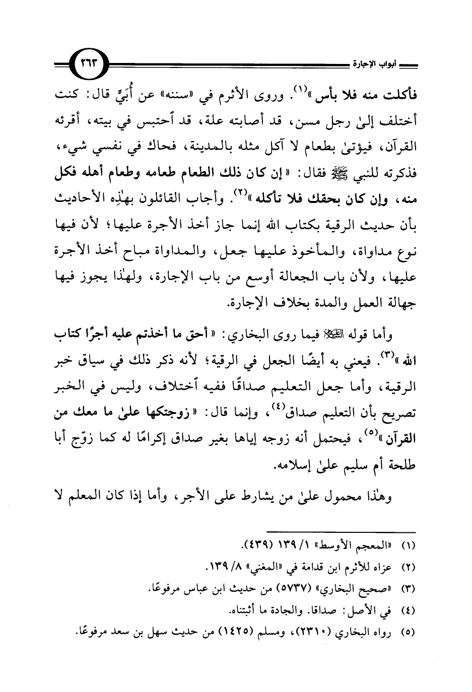 فأكلت منه فلا بأس" (¬1). وروى الأثرم في "سننه" عن أُبَيٍّ قال: كنت اختلف إلى رجل مسن، قد أصابته علة، قد احتبس في بيته، أقرئه القرآن، فيؤتى بطعام لا آكل مثله بالمدينة، فحاك في نفسي شيء، فذكرته للنبي - صلى الله عليه وسلم - فقال: "إن كان ذلك الطعام طعامه وطعام أهله فكل منه، وإن كان بحقك فلا تأكله" (¬2). وأجاب القائلون بهذِه الأحاديث بأن حديث الرقية بكتاب الله إنما جاز أخذ الأجرة عليها؛ لأن فيها نوع مداواة، والمأخوذ عليها جعل، والمداواة مباح أخذ الأجرة عليها، ولأن باب الجعالة أوسع من باب الإجارة، ولهذا يجوز فيها جهالة العمل والمدة بخلاف الإجارة.