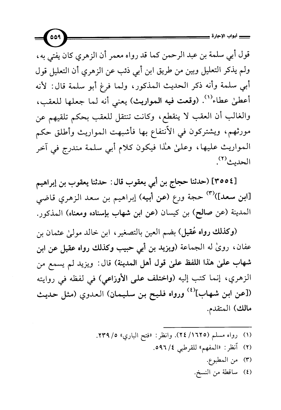 [3554] (حدثنا حجاج بن أبي يعقوب قال: حدثنا يعقوب بن إبراهيم [ابن سعد]) (¬3) حجة ورع (عن أبيه) إبراهيم بن سعد الزهري قاضي المدينة (عن صالح) بن كيسان (عن ابن شهاب بإسناده ومعناه) المذكور.