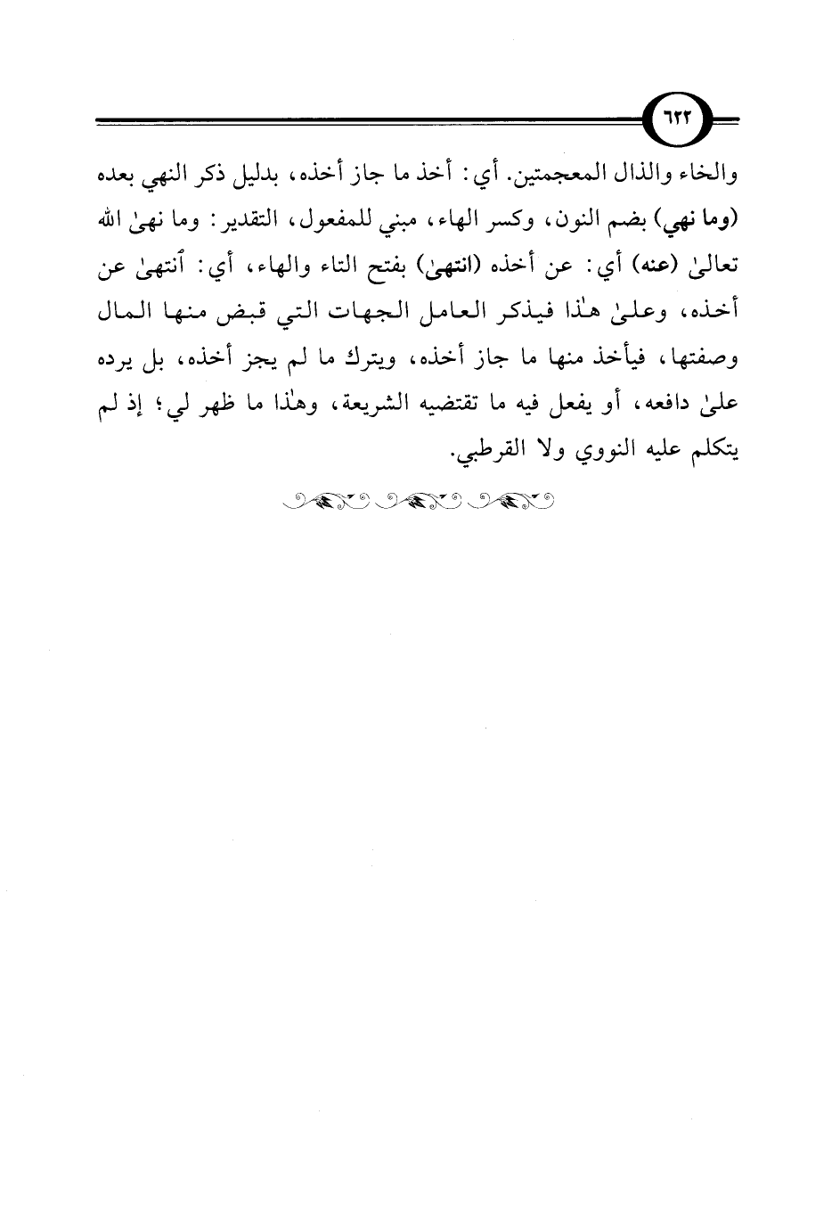 والخاء والذال المعجمتين. أي: أخذ ما جاز أخذه، بدليل ذكر النهي بعده (وما نهي) بضم النون، وكسر الهاء، مبني للمفعول، التقدير: وما نهى الله تعالى (عنه) أي: عن أخذه (انتهى) بفتح التاء والهاء، أي: انتهى عن أخذه، وعلى هذا فيذكر العامل الجهات التي قبض منها المال وصفتها، فيأخذ منها ما جاز أخذه، ويترك ما لم يجز أخذه، بل يرده على دافعه، أو يفعل فيه ما تقتضيه الشريعة، وهذا ما ظهر لي؛ إذ لم يتكلم عليه النووي ولا القرطبي.