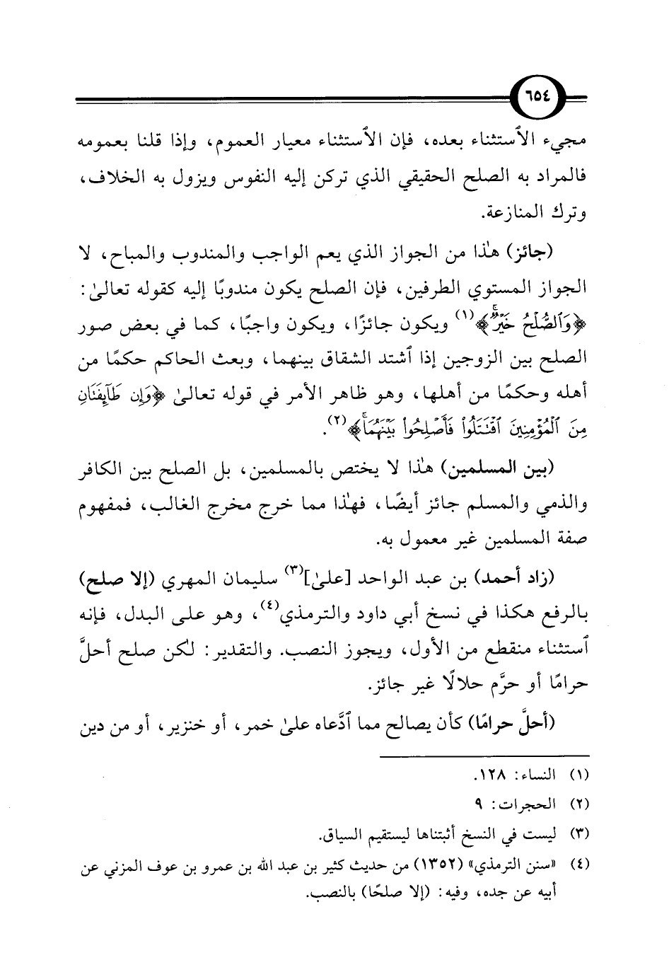 (¬4) "سنن الترمذي" (1352) من حديث كثير بن عبد الله بن عمرو بن عوف المزني عن أبيه عن جده، وفيه: (إلا صلحًا) بالنصب.