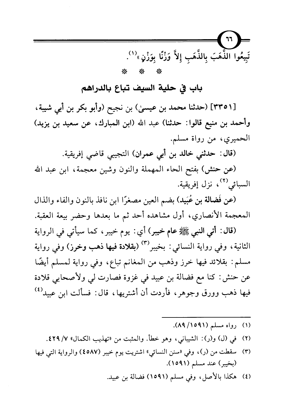 باب في حلية السيف تباع بالدراهم