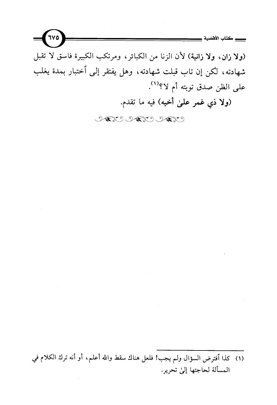 (¬1) كذا افترض السؤال ولم يجب! فلعل هناك سقط والله أعلم، أو أنه ترك الكلام في المسألة لحاجتها إلى تحرير.