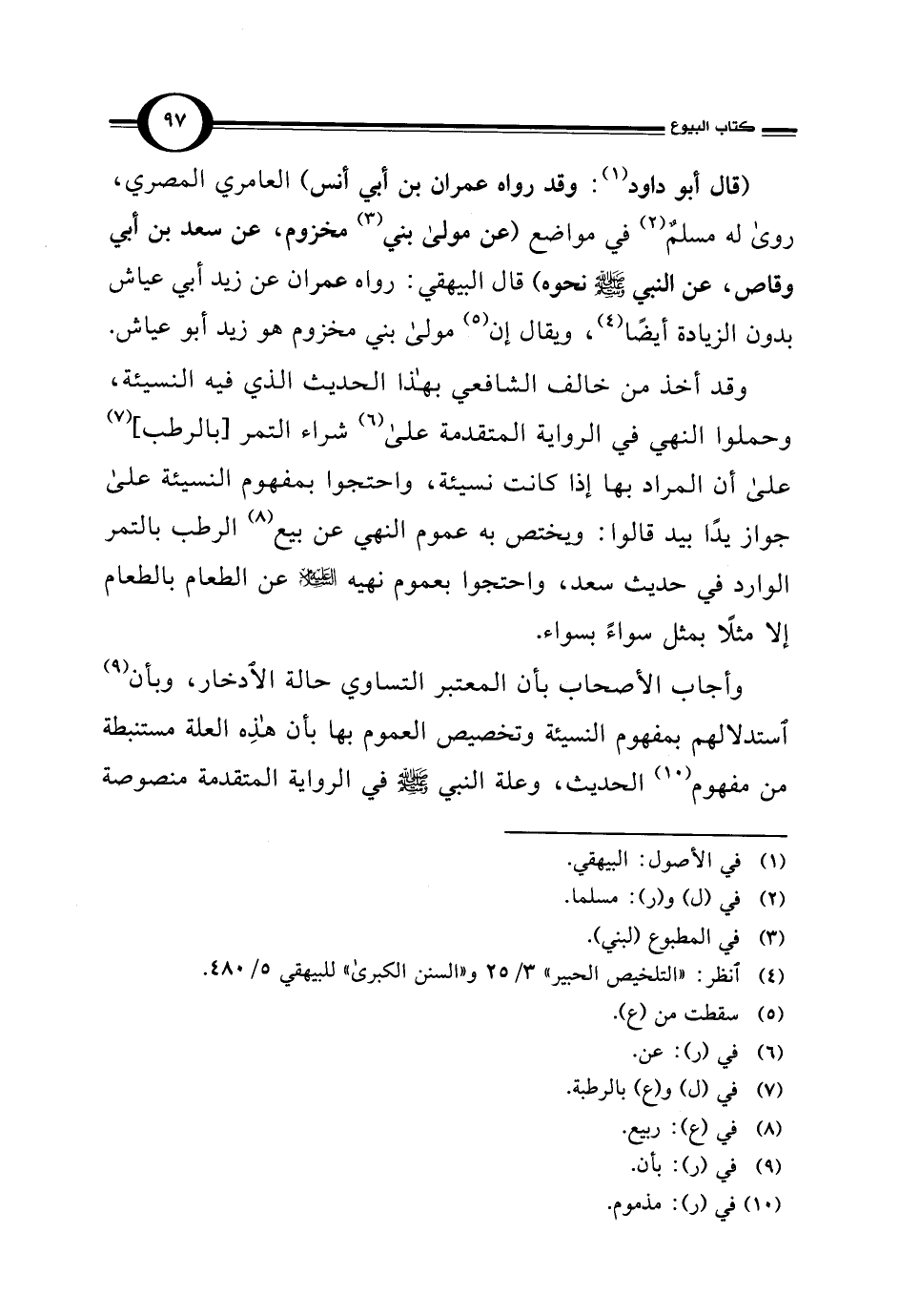 (¬4) انظر: "التلخيص الحبير" 3/ 25 و"السنن الكبرى" للبيهقي 5/ 480.