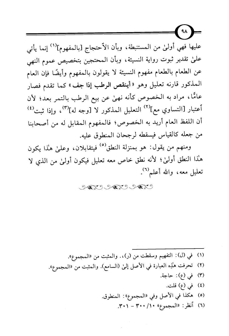 (¬6) انظر: "المجموع" 10/ 300 - 301.