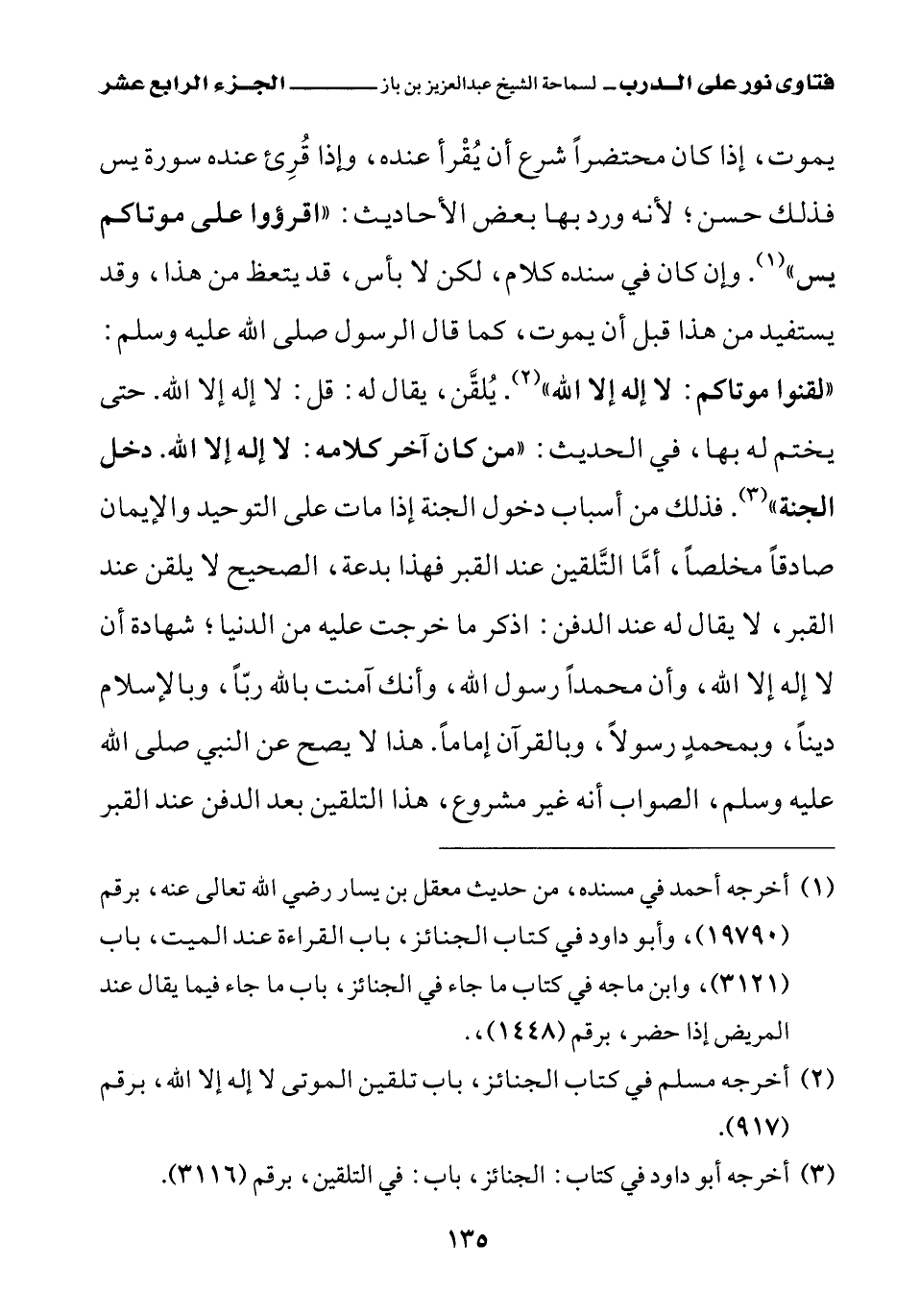 (¬3) أخرجه أبو داود في كتاب الجنائز، باب في التلقين، برقم (3116).