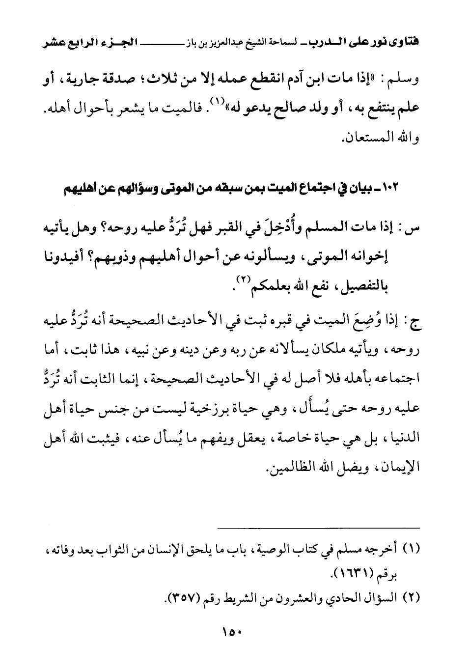 102 - بيان في اجتماع الميت بمن سبقه من الموتى وسؤالهم عن أهليهم