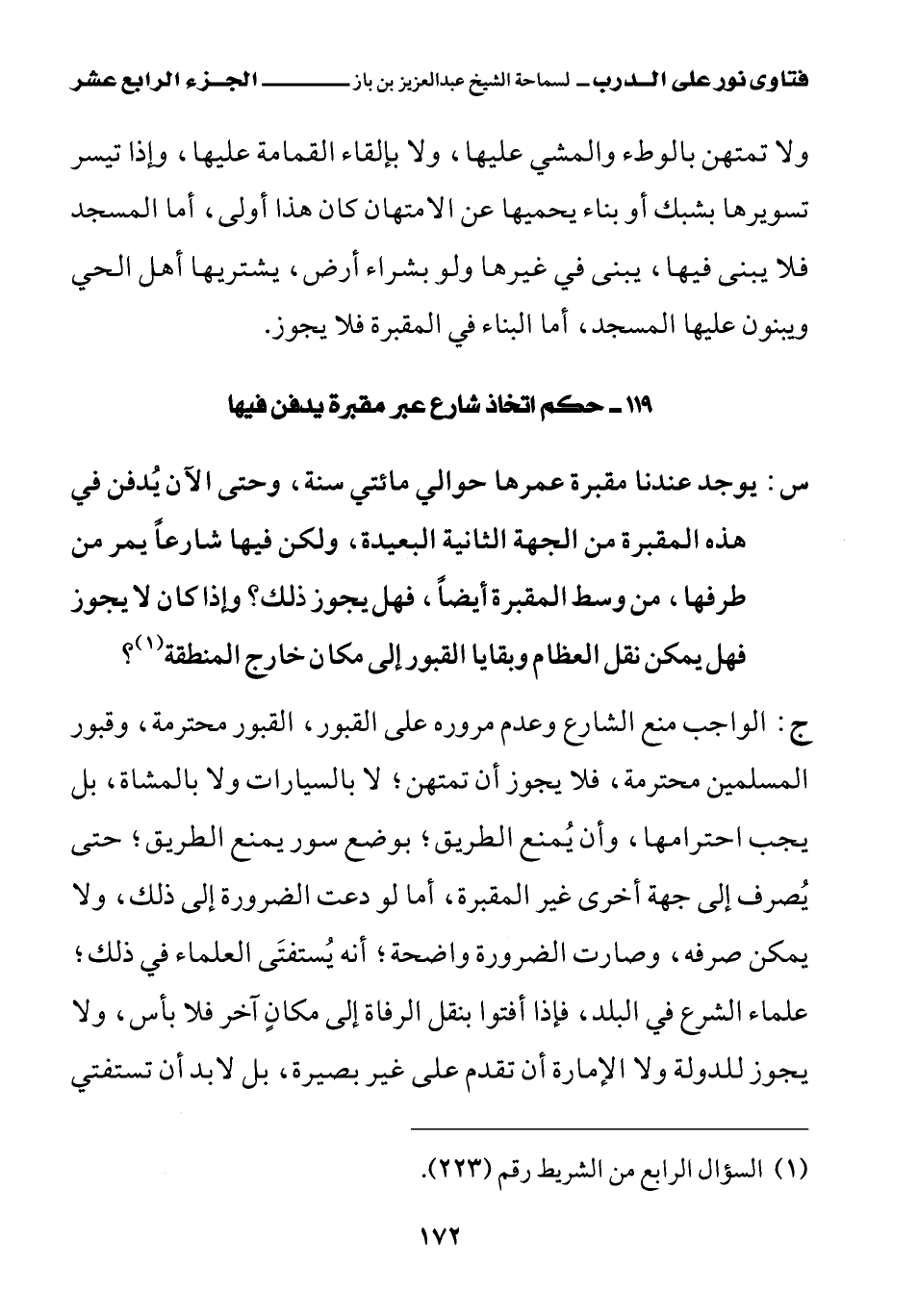 119 - حكم اتخاذ شارع عبر مقبرة يدفن فيها