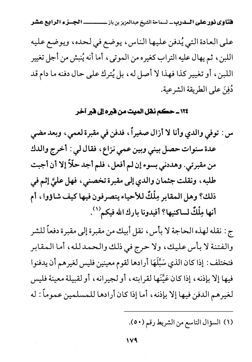 124 - حكم نقل الميت من قبره إلى قبر آخر