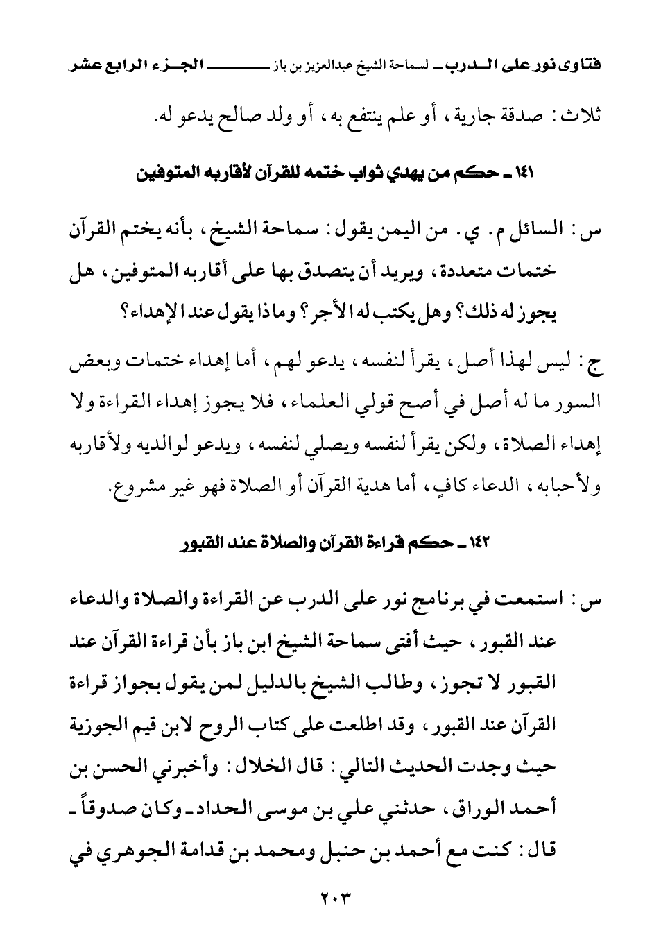 142 - حكم قراءة القرآن والصلاة عند القبور