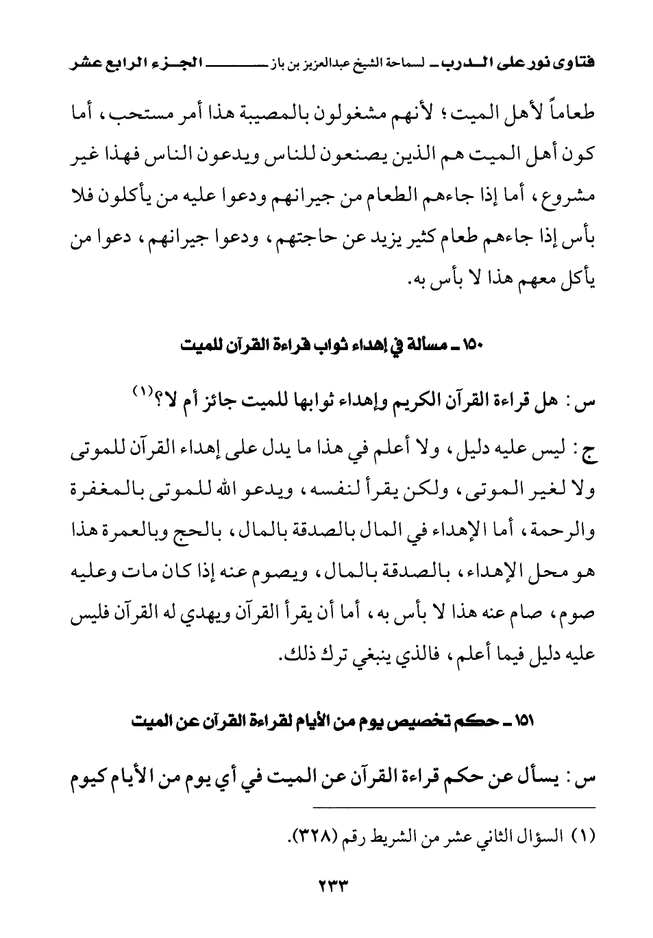 150 - مسألة في إهداء ثواب قراءة القرآن للميت