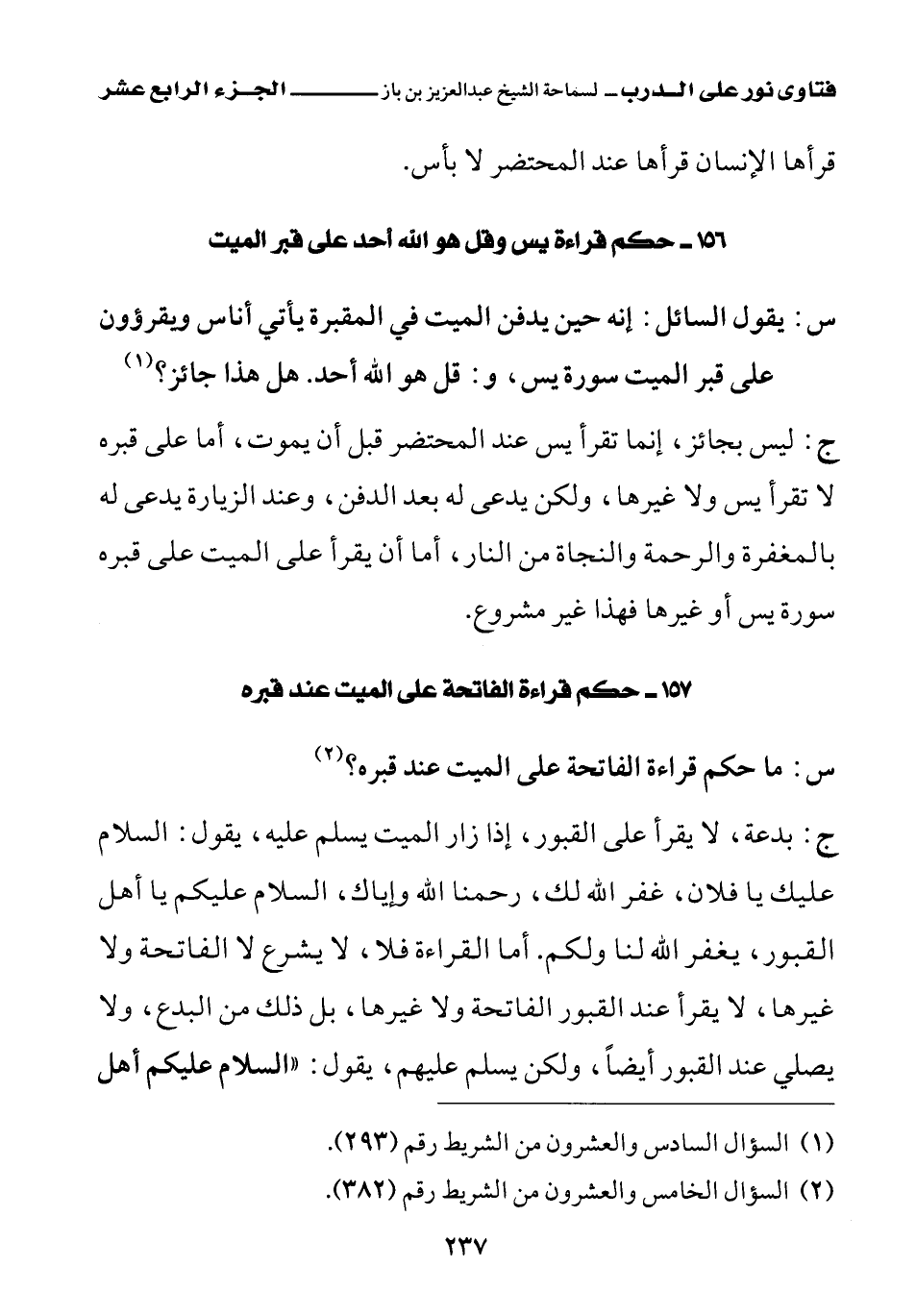 157 - حكم قراءة الفاتحة على الميت عند قبره