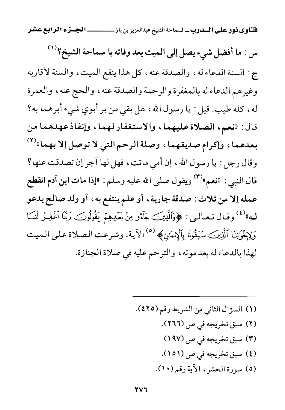 س: ما أفضل شيء يصل إلى الميت بعد وفاته يا سماحة الشيخ؟ (¬1)