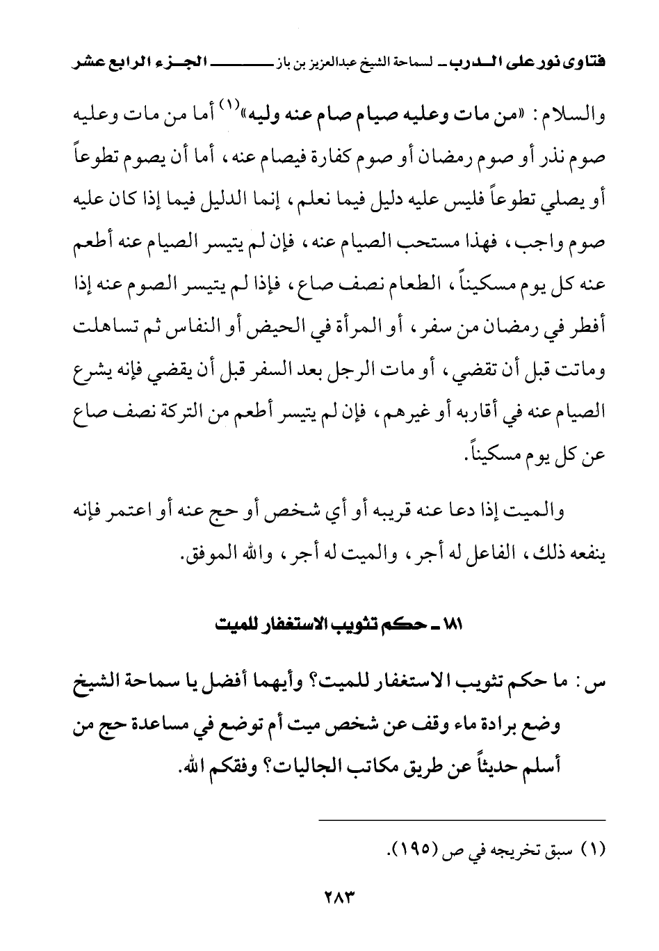 كتاب فتاوى نور على الدرب لابن باز بعناية الشويعر (اسم الجزء: 14)