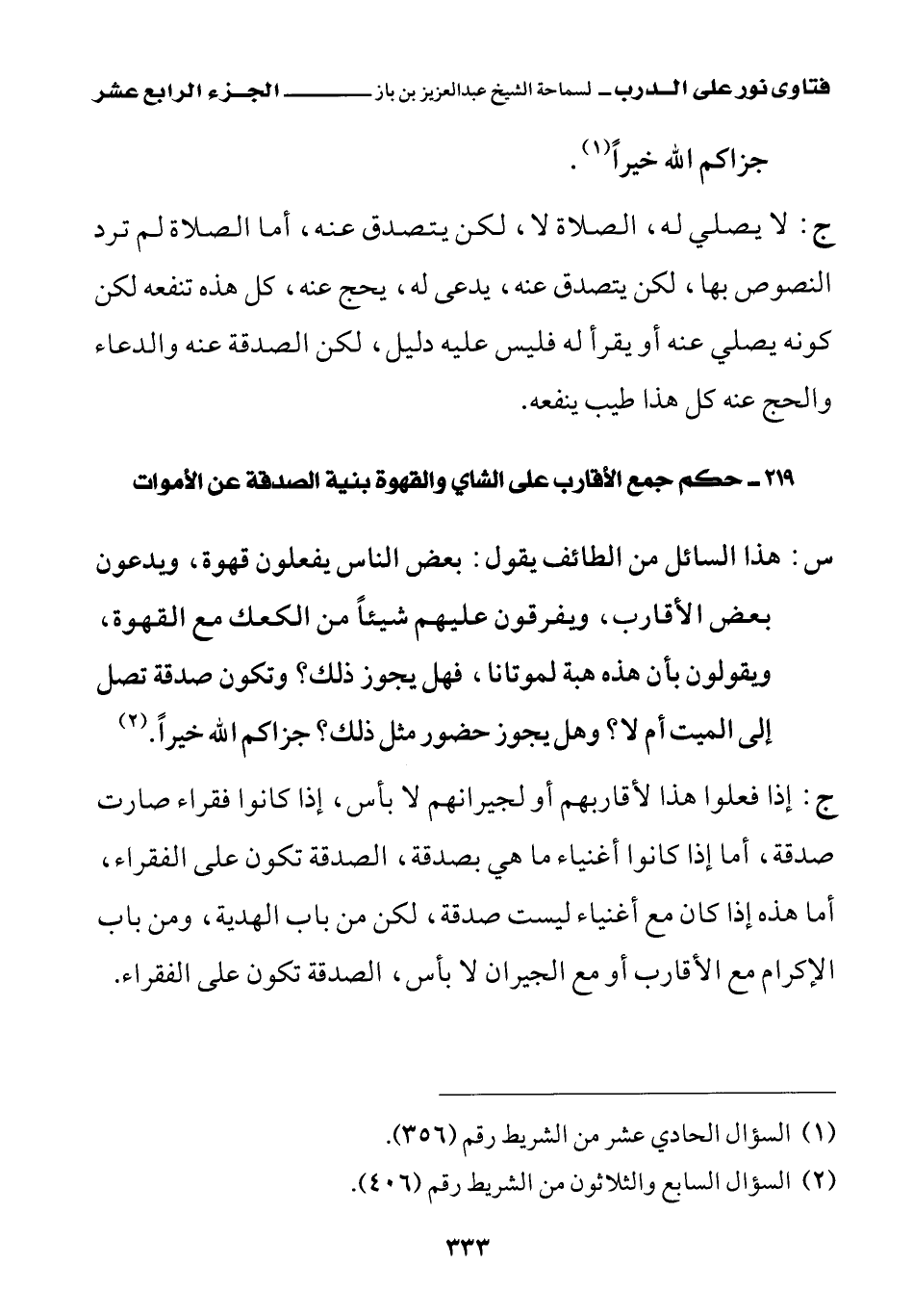 219 - حكم جمع الأقارب على الشاي والقهوة بنية الصدقة عن الأموات