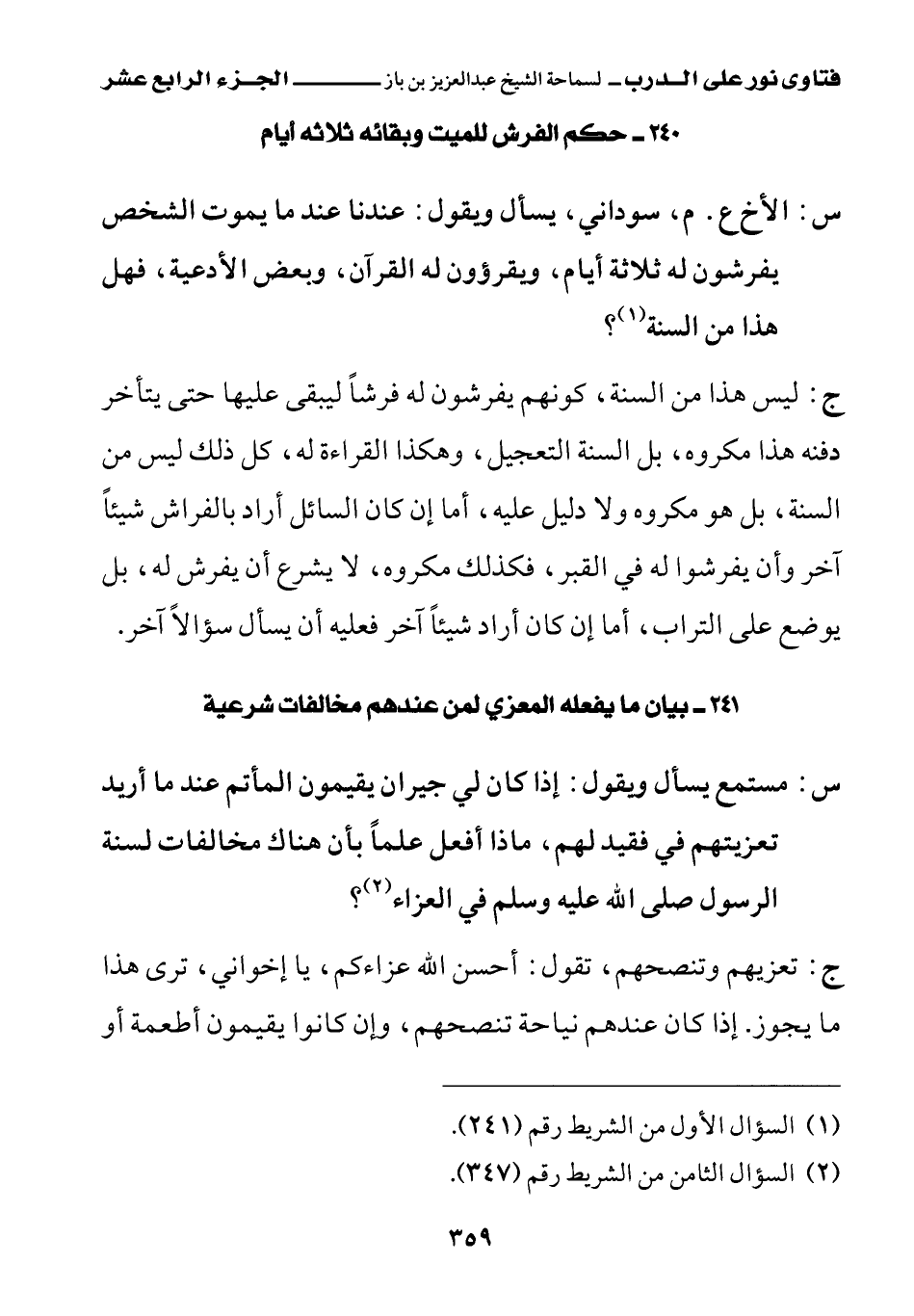240 - حكم الفرش للميت وبقائه ثلاثة أيام