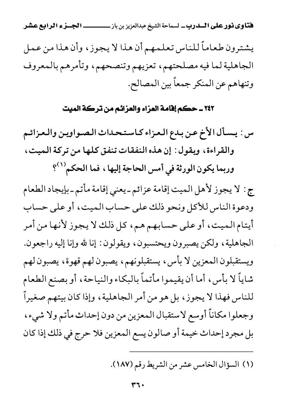 242 - حكم إقامة العزاء والعزائم من تركة الميت