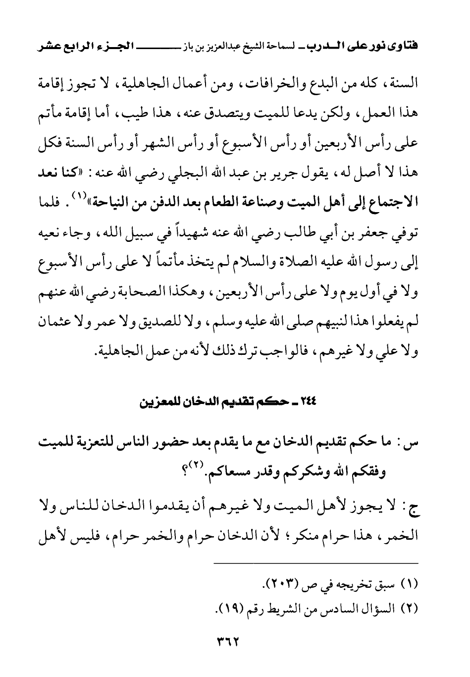 244 - حكم تقديم الدخان للمعزين