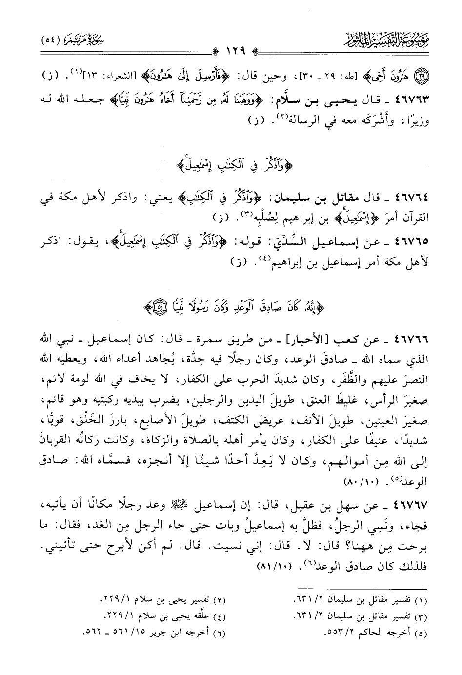 ٤٦٧٦٥ - عن إسماعيل السُّدِّيّ: قوله: {واذكر في الكتاب إسماعيل}، يقول: اذكر لأهل مكة أمر إسماعيل بن إبراهيم (¬٤). (ز)