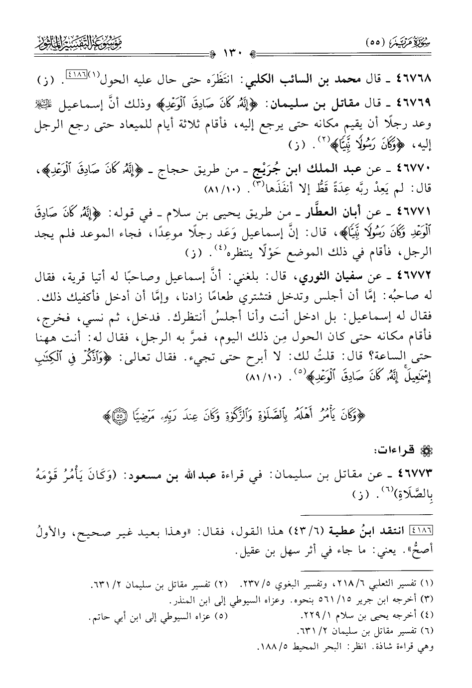 ٤٦٧٧٣ - عن مقاتل بن سليمان: في قراءة عبد الله بن مسعود: (وكانَ يَأْمُرُ قَوْمَهُ بِالصَّلاةِ) (¬٦). (ز)