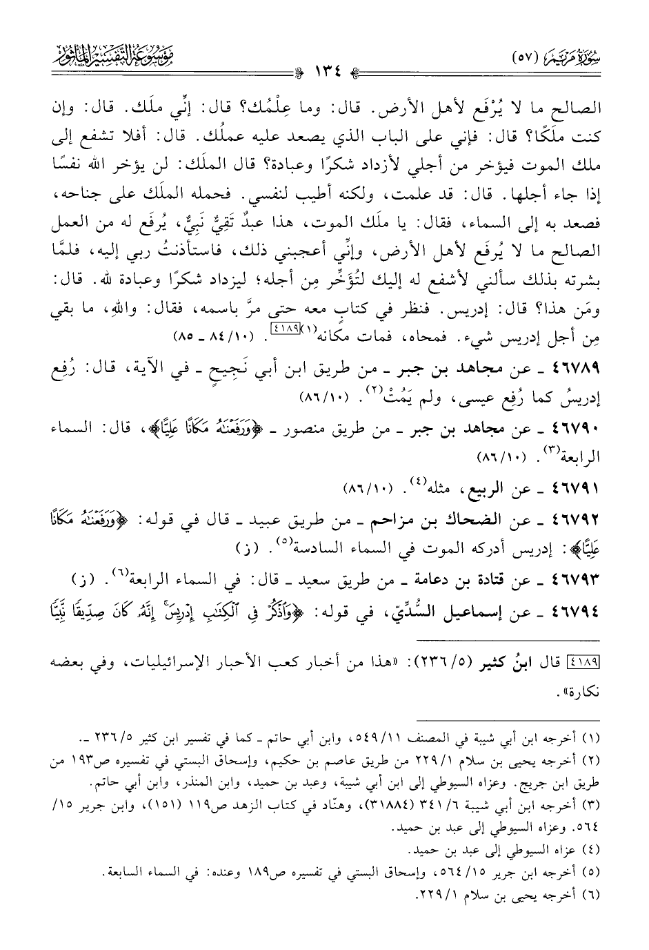 ٤٦٧٩٢ - عن الضحاك بن مزاحم -من طريق عبيد- قال في قوله: {ورفعناه مكانا عليا}: إدريس أدركه الموت في السماء السادسة (¬٥). (ز)