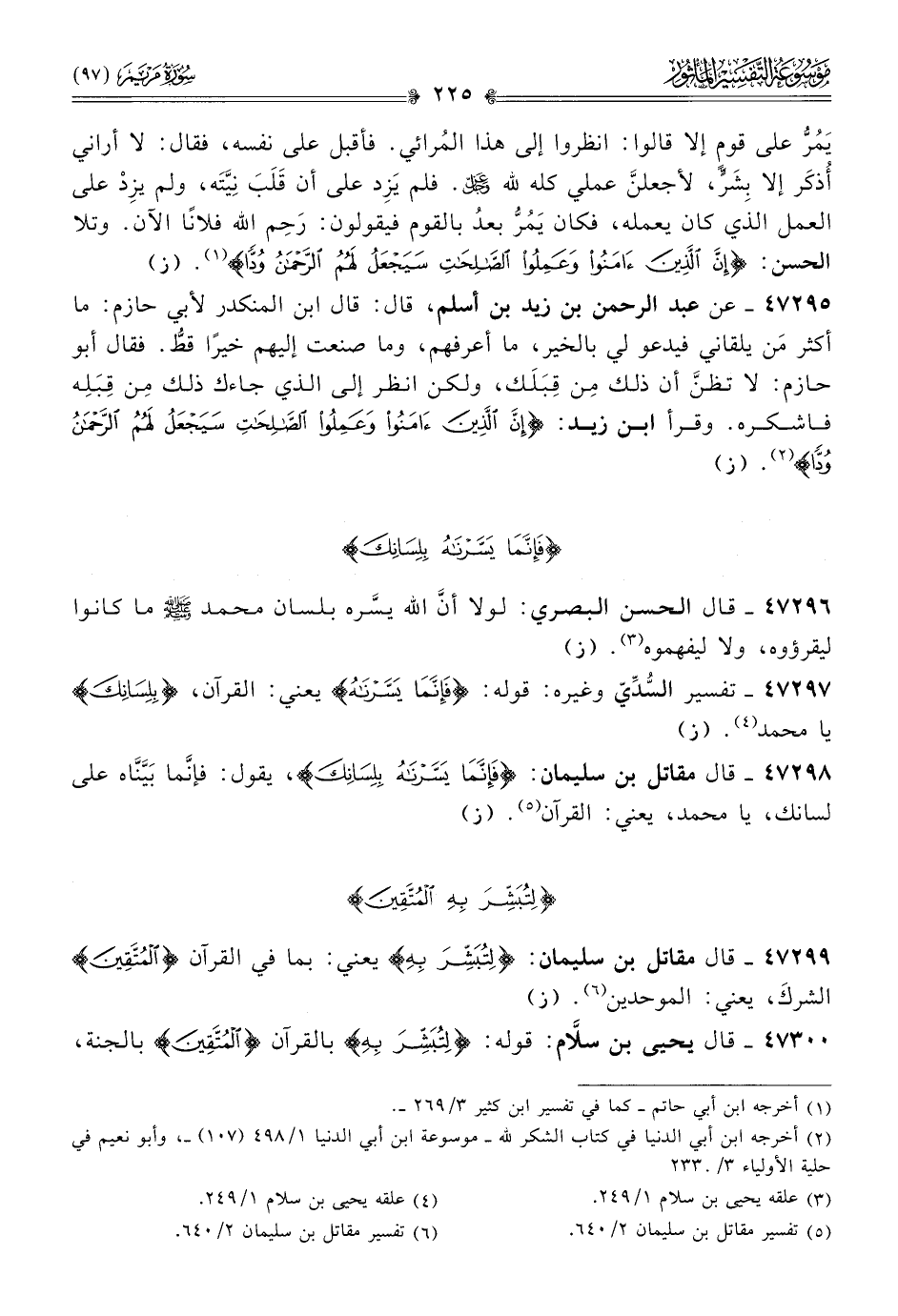 ٤٧٣٠٠ - قال يحيى بن سلّام: قوله: {لتبشر به} بالقرآن {المتقين} بالجنة،
