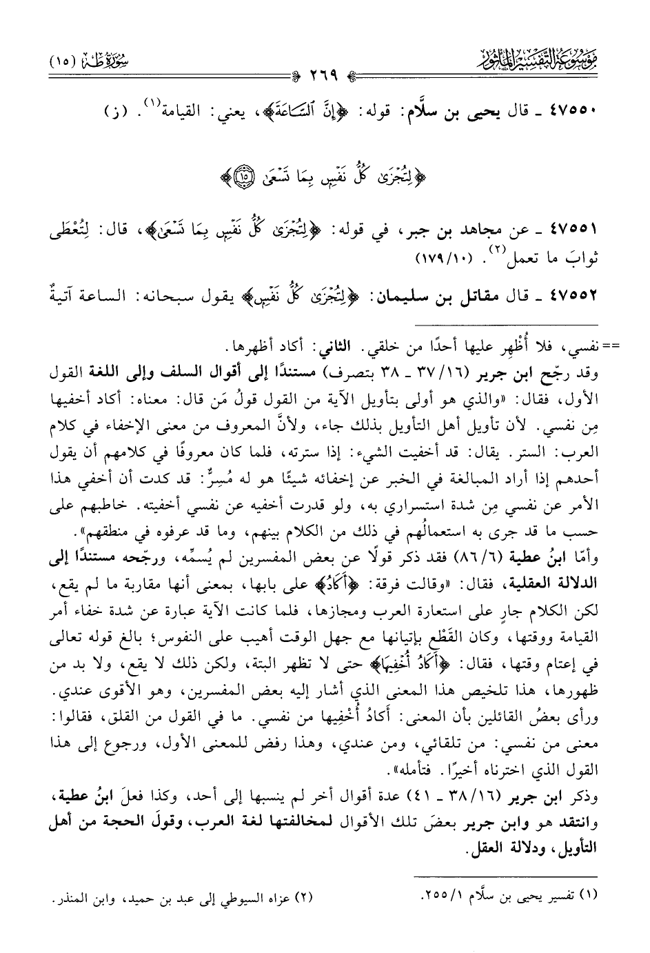 ٤٧٥٥٠ - قال يحيى بن سلّام: قوله: {إن الساعة}، يعني: القيامة (¬١). (ز)