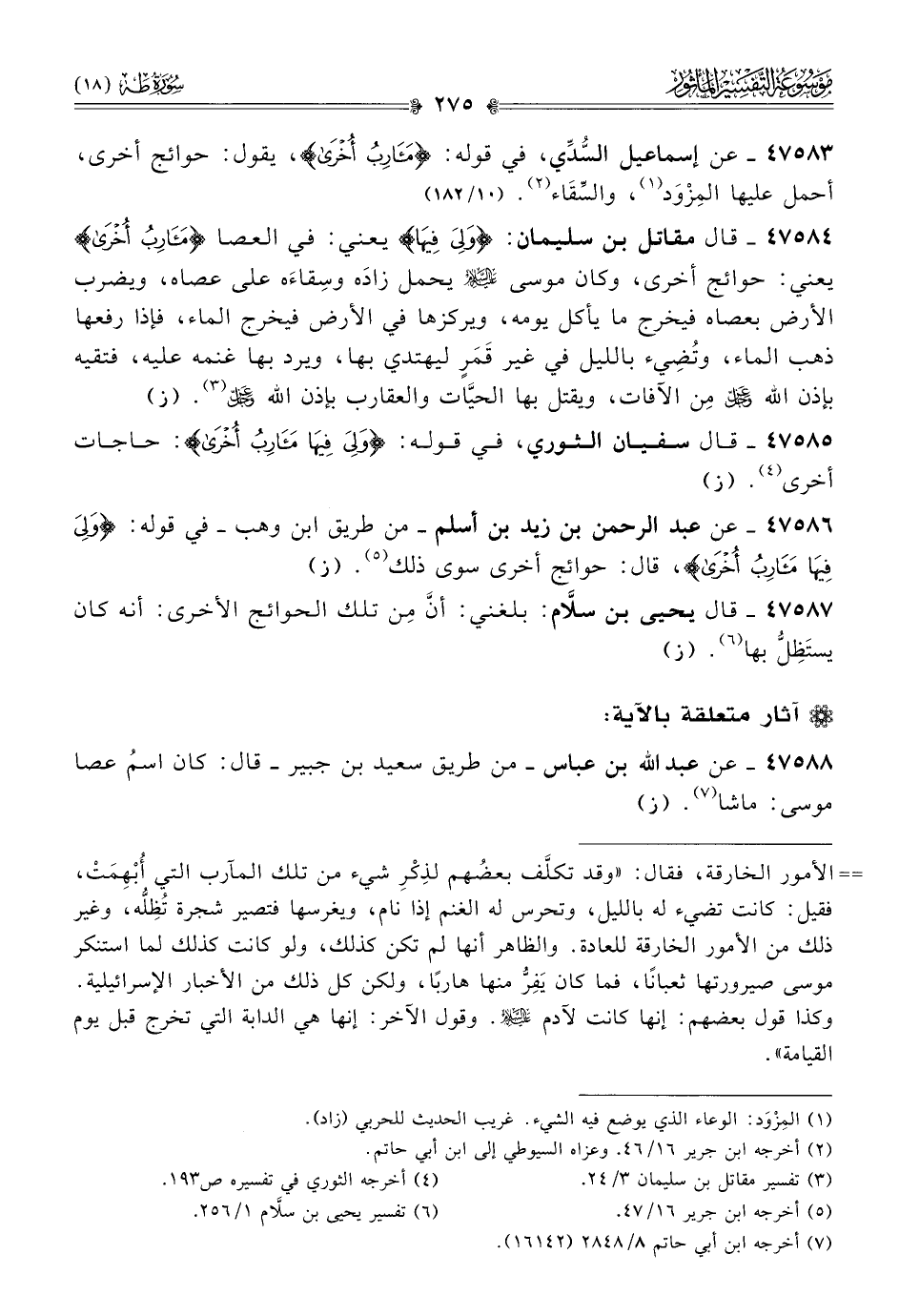 ٤٧٥٨٥ - قال سفيان الثوري، في قوله: {ولي فيها مآرب أخرى}: حاجات أخرى (¬٤). (ز)