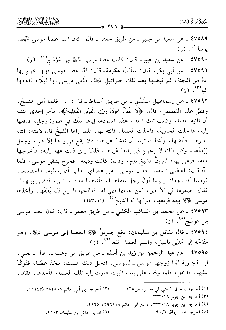 ٤٧٥٨٩ - عن سعيد بن جبير -من طريق جعفر- قال: كان اسم عصا موسى - عليه السلام -: يوشا (¬١). (ز)