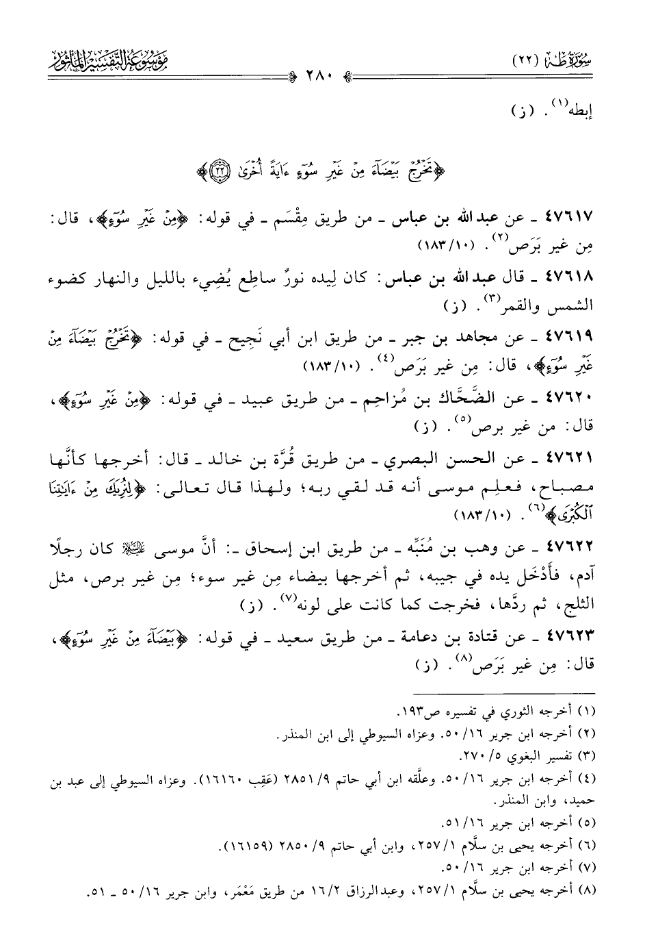 ٤٧٦١٧ - عن عبد الله بن عباس -من طريق مِقْسَم- في قوله: {من غير سوء}، قال: مِن غير بَرَص (¬٢). (ز)