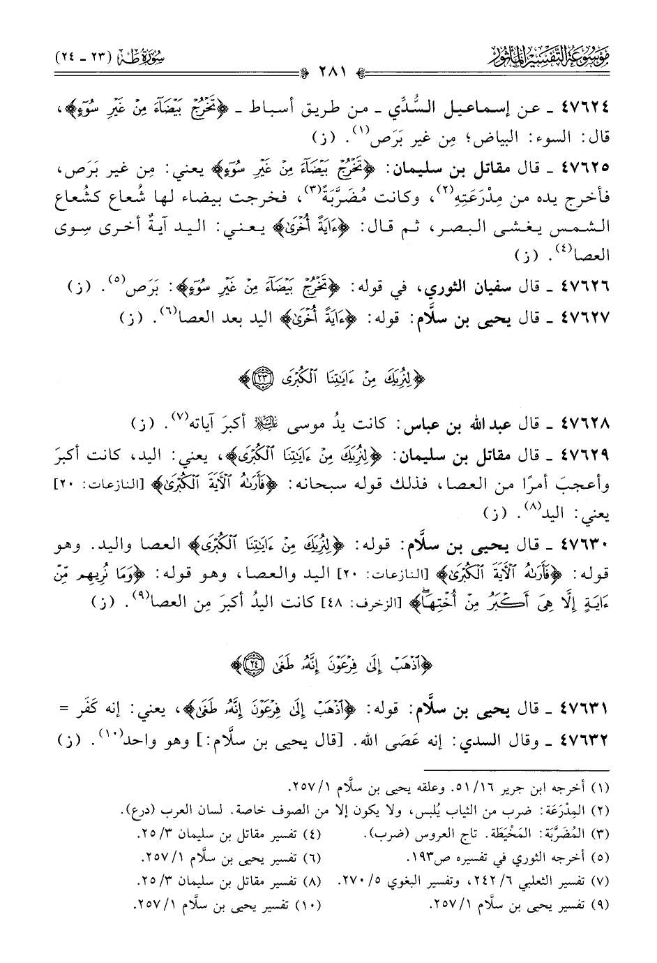 ٤٧٦٢٦ - قال سفيان الثوري، في قوله: {بيضاء من غير سوء}: بَرَص (¬٥). (ز)