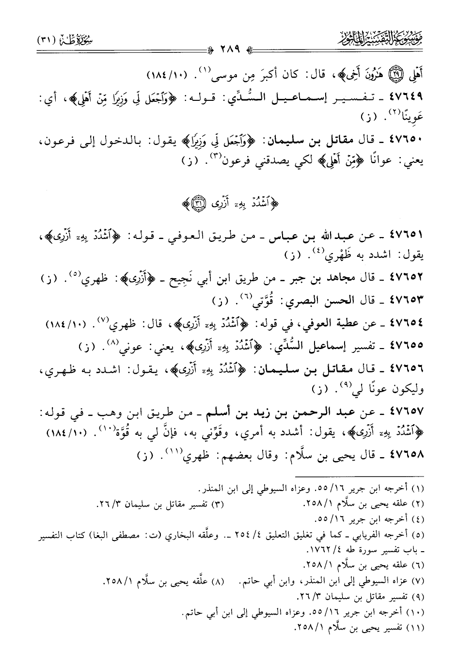 ٤٧٦٥٤ - عن عطية العوفي، في قوله: {أشدد به أزري}، قال: ظهري (¬٧). (١٠/ ١٨٤)
