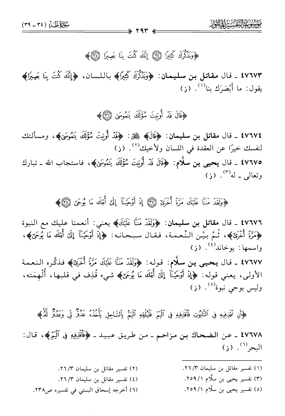 ٤٧٦٧٥ - قال يحيى ين سلّام: {قال قد أوتيت سؤلك يا موسى}، فاستجاب الله -تبارك وتعالى- له (¬٣). (ز)