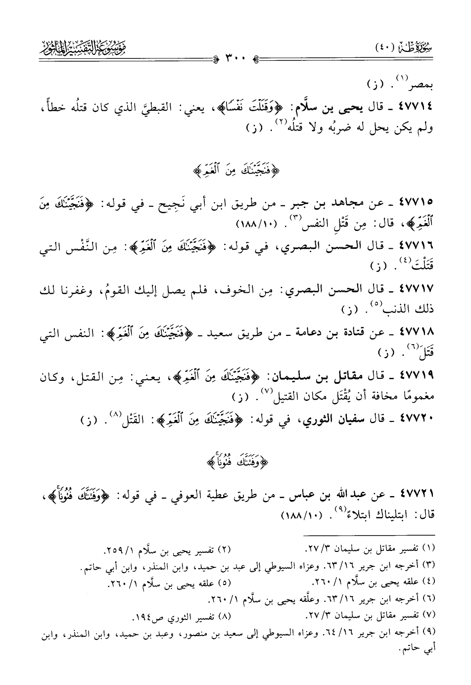 ٤٧٧٢٠ - قال سفيان الثوري، في قوله: {فنجيناك من الغم}: القَتْل (¬٨). (ز)