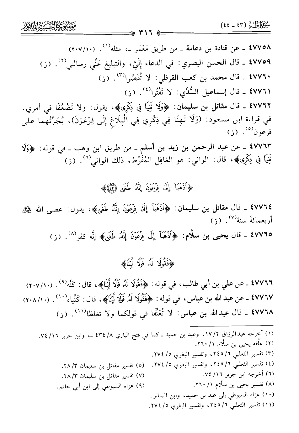 ٤٧٧٦٤ - قال مقاتل بن سليمان: {اذهبا إلى فرعون إنه طغى}، يقول: عصى الله - عز وجل - أربعمائةَ سنة (¬٧). (ز)