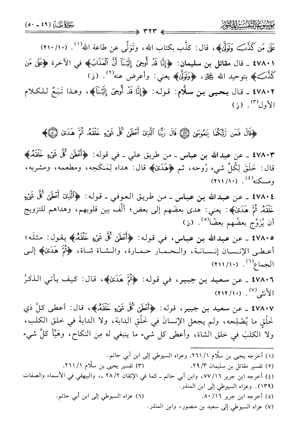 ٤٧٨٠٧ - عن سعيد بن جبير، قوله: {أعطى كل شيء خلقه}، قال: أعطى كلَّ ذي خَلْقٍ ما يُصْلِحه، ولم يجعل الإنسانَ في خَلْقِ الدابة، ولا الدابةَ في خلق الكلب، ولا الكلبَ في خلق الشاة، وأعطى كل شيء ما ينبغي له مِن النكاح، وهَيَّأ كلَّ شيء