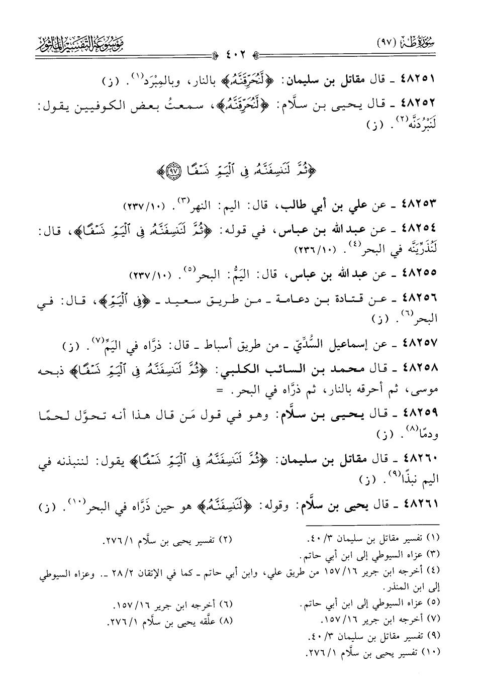 ٤٨٢٥٤ - عن عبد الله بن عباس، في قوله: {ثم لننسفنه في اليم نسفا}، قال: لَنُذَرِّيَنَّه في البحر (¬٤). (١٠/ ٢٣٦)